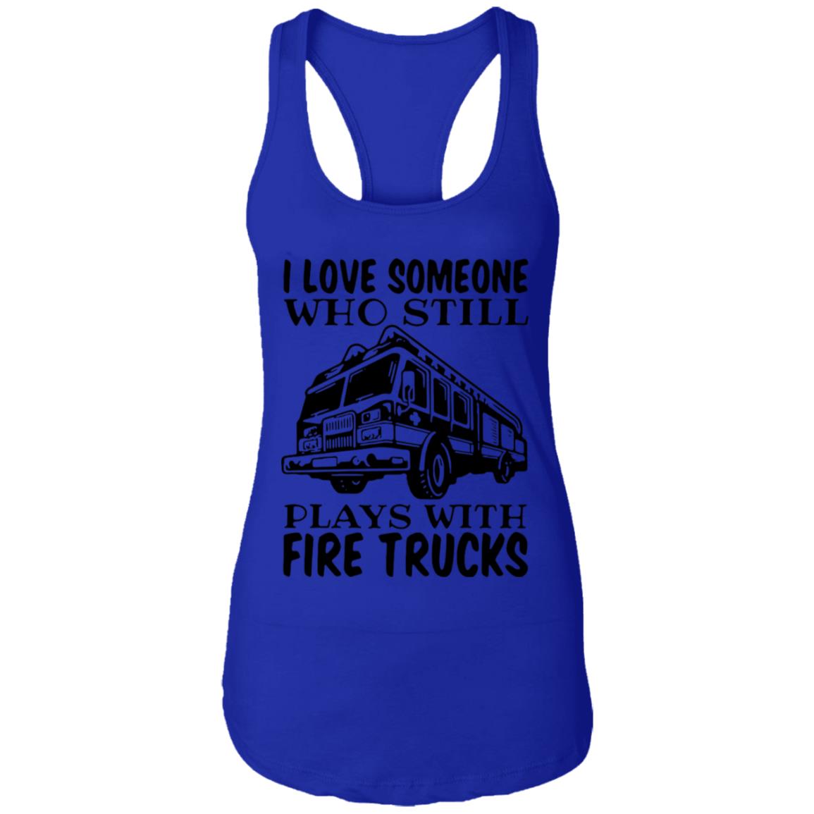 I Love Someone Who Still Plays With Fire Trucks Racerback Tank